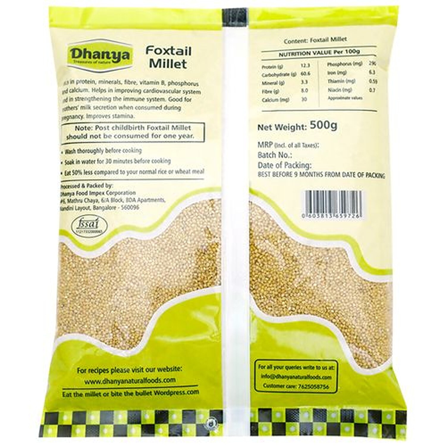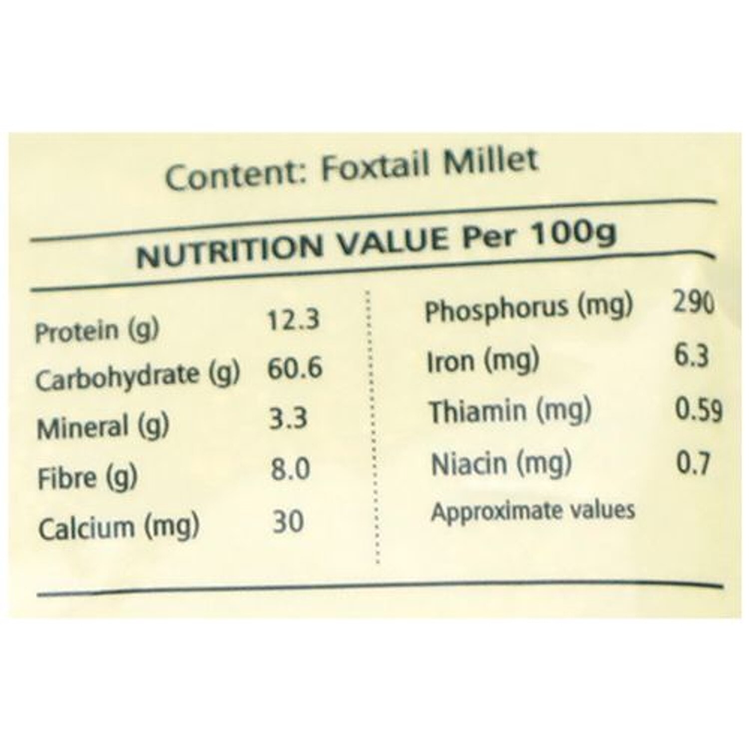 About the Product @import url("https://www.desercart.com/static/froala_style_v2.min.css"); Millets are the richest natural source of dietary fibre due to which food containing millets digests slowly and provides energy to all the body parts over extended periods of time unlike food with low fibre content which gets converted into glucose within minutes due to which food cannot be properly digested by the body, leading to various lifestyle diseases. This foxtail millet is fibre balanced and abundant in micronutrients which helps fight lifestyle diseases. It is handpicked from red fed farms, is manually processed, and unpolished. How to Use @import url("https://www.desercart.com/static/froala_style_v2.min.css"); Soak for about 8 hours.Wash thoroughly.Cook like white rice.