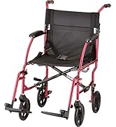 I have been using my old transport chair for over a decade, so I decided it was high time I got a new one. I spent a while looking at the various designs and styles before picking this one, and I am very pleased with my choice. My previous chair was also a Nova and was fantastic, but this one feels even lighter. My husband says it glides incredibly easy when he pushes me, and it's lightweight and easy for him to collapse and put in and out of our trunk. For my part, the seat is very comfortable and the arm rests are exactly the right height. I love the design feature that the arm bars swoop lower down earlier towards the front than other chairs, making it easy to slide in under desks and tables. I was able to comfortably eat in my chair without needing to lean far forward or risk dropping food in my lap. The way the arm bars can be lifted up and out of the way is also very nice and makes getting in and out of the chair from different angles a breeze. It's all very easy to do, as well; it doesn't require strength or force to pull them up or put them back down, but they still lock in very securely. For braking, I love having the very secure wheel locks that I can use myself from in the chair. At the same time, there are also the hand brakes my husband can use while pushing the chair, either to slow it down going downhill, or to put down to lock in the brakes. These are not as strong as the wheel locks, but they work very well nonetheless. The anti-tippers I am still getting used to as we didn't have them on our previous chair. I like that you can have them pointing up or down. We put ours pointing up since we don't need the anti-tip and we like to be able to lean the chair back far to get it up or down curbs. On my previous chair there was just a nub there, and my husband uses his foot on that nub to help tilt the chair back for curbs. On this one, since the anti tippers have little wheels, his foot can slip off if he's not careful when he goes to do it. This isn't really a problem, just something we're adjusting to since it's different from the chair we've been using for 10 years. The little anti-tipper wheels themselves rattle slightly when going over bumps and cracks, since they're just hanging up there not in use, which is pretty minor, but it's a sound we're not used to so it has been catching our attention; I suspect we'll be used to tuning it out soon. There is the option to remove them entirely if desired, which is nice to have. The color is beautiful. I got this chair in the purple, but my previous one from the same maker was red, and I can say both colors look wonderful. It really livens it up to have a splash of color instead of the standard, boring medical black most things come in. Their colors have a nice shine to it and it looks very classy and nice. I regularly got compliments on the red of my previous chair, and I won't be surprised if I get compliments on the purple I chose this time. I can also say that the color lasts very well. Again, my previous chair was by this same maker, and I have used it for over a decade. There are only a few scratches on the paint of that one after all this time, going in and out of trunks and travelling a lot, and in very unnoticeable areas, so I'm happy knowing already that the beautiful color on this one will last too. Another great aspect of this chair is that all the parts are replaceable from the maker, Nova. I've replaced parts on my previous chair from them, and it is very easy, reasonably priced, and ships fast. In this chair's case, I happened to be missing a little washer, so I contacted my seller, Mobile Mobility Services, and they responded to me within a couple hours, and after following up with them, they had the missing washer sent from Nova, and it arrived the next day! Both my individual seller and the wheelchair maker have fantastic customer service, so you can rest easy buying one of their chairs!