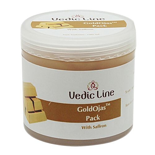 About the Product @import url("https://www.desercart.com/static/froala_style_v2.min.css"); Get glowing, flawless skin using the Vedic Line God Ojas Face Pack. The Vedic Line Gold Ojas Pack gives you a youthful, radiating glow with a beautiful golden aura to the skin. Ayurveda suggests the use of Saffron, Almond, Marigold flowers, Turmeric and Sandalwood to get fair, younger looking and bright skin. The face pack comes with benefits of Gold since they absorb rays of the Sun and bring out the natural beauty of your skin. It is enriched with Gold Dust, Essential Fatty Acids, Antioxidants and Vitamins, to give you nourished skin with improved skin texture. How to Use @import url("https://www.desercart.com/static/froala_style_v2.min.css"); • Apply it on moisturized skin when it is semi-dry• ,Clean it Composition @import url("https://www.desercart.com/static/froala_style_v2.min.css"); Aqua (Water), Guar Gum, Allantoin, Lactic Acid, Glycerin, Gold Dust, Saffron Extract. Features @import url("https://www.desercart.com/static/froala_style_v2.min.css"); • Glowing radiant skin • Skin balanced and relaxed• Refreshes and energises skin• Helps to keep skin taut