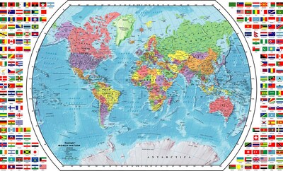 Description Replogle World wall map measuring 33" x 49" has color-matching relief which shows mountain ranges and other elevation changes. Replogle World wall map measuring 33" x 49" comes with bold colors and detailed cartography. Map has gall stereographic projections which show countries and continents truer to their relative size. Size: 33" x 49" Legend for all countries Bold colors and detailed cartography Size: 33" x 49" Legend for all countries Specifications Globe, Map & Flag Type : Maps Continental Coverage : World Brand : Replogle Globe Customizable : No Weight : 1.00 lbs. per Each