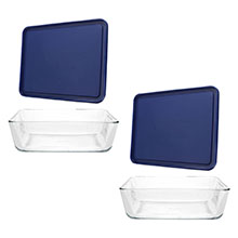 This 2-pack of Pyrex 11-cup glass dishes with BPA-free dark blue lids offers versatile, durable food storage solutions. Designed for perfect compatibility, these dishwasher-safe, microwave- and freezer-friendly containers keep your meals fresh and your kitchen organized with trusted American craftsmanship.
