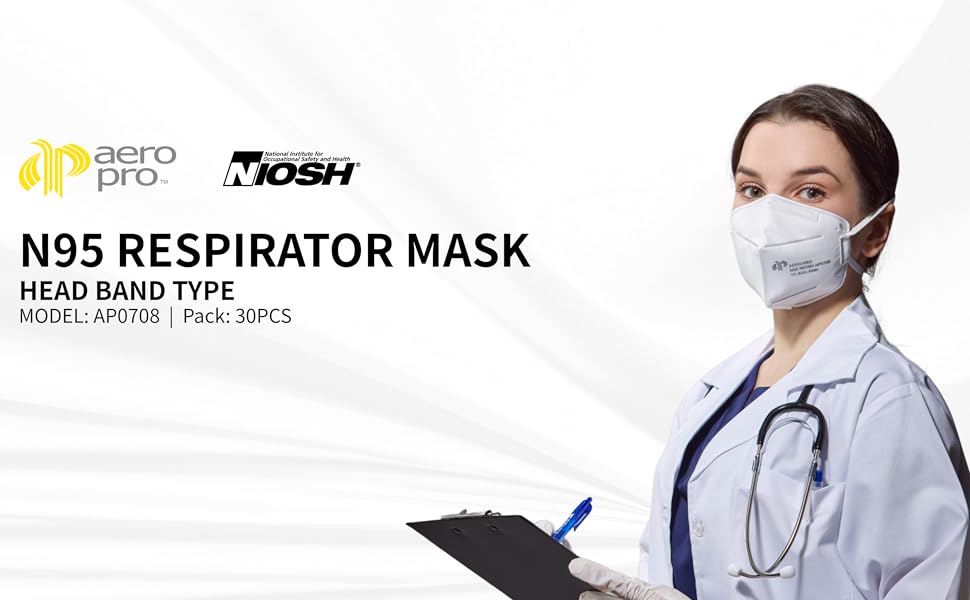 AERO PRO N95 Particulate Respirator Mask, NIOSH Certified, Model AP0708, Box of 30 Masks