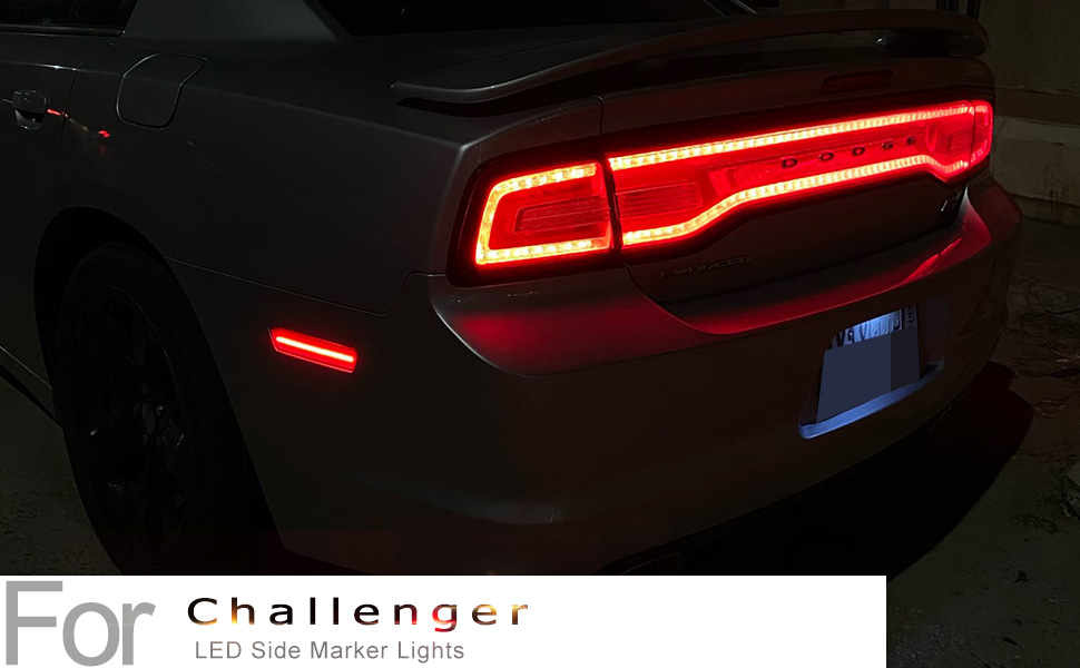 This LED side marker light kit is a perfect fit upgrade for 2008-2014 Dodge Challengers, featuring smoked lenses with amber front and red rear LEDs powered by 180 high-intensity SMD chips. Designed for direct plug-and-play installation, these DOT/SAE certified lights enhance both the aesthetic and safety of your muscle car, backed by a 1-year warranty and durable, water-resistant construction.