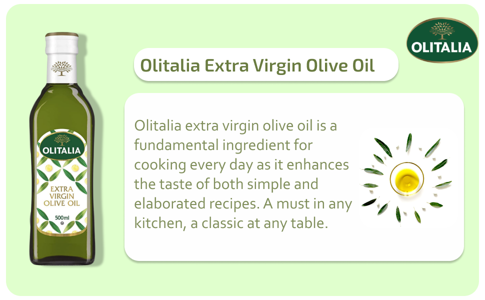 Olitalia Extra Virgin Olive Oil is a 500 ml bottle of premium, I.G.P. certified olive oil from South-central Europe. It boasts a medium fruity, slightly bitter, and pungent flavor profile, ideal for enhancing a wide range of dishes from salads to grilled foods. Free from allergens, artificial additives, and GMO ingredients, it meets kosher standards and supports a clean, versatile, and authentic cooking experience.