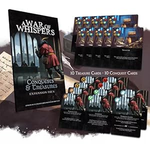 The War of Whispers Conquests and Treasures Pack is a premium expansion featuring 20 exclusive cards—10 Conquest cards that trigger immediate effects and 10 versatile Treasure wild cards. Designed for players 14 and up, this lightweight, no-assembly pack requires the War of Whispers base game and seamlessly enhances your strategic gameplay experience.