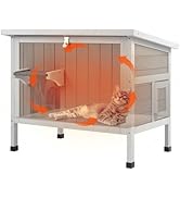 We needed a cat house to keep the cats out of the wind and cold during the cold Utah winters. This is awesome. It has space for 2 adult cats, more if the cats are willing to snuggle. What I love: -Looks nice against our back of the house. Does not look out of place or trashy. -2 entrances/exits 3- weather resistant roof etc. Modifications: Since we get down in the freezing temps. Just ideas for others who may need some. I did some additional modifications such as caulking all the major interior cracks to keep cold air out. I also added remnant carpet padding and carpet for added warmth and comfort. ( you should easily be able to purchase carpet and pad remnants at any local carpet supplier. More likely they'd probably just give you two 18x18 inch pieces that are going in the garbage anyway. To top it off I purchased two 18x18 130 degree F cat heating mats on Amazon which work great. The top on has to be folded underneath itself a bit where the access hole is. Also if you add carpet etc. like me, you will notice that the bottom door won't swing open without catching on the carpet. So you can see I left a small gap without carpet and pad. If it doesn't get below freezing then you may not want to add all these modifications, but it works well. Last night it was about 30 degrees and with me modifications I think it stayed around 45 degrees. The cats are out of the wind which is the biggest issue and can comfortably stay inside the house until the sun comes up. Even as is, this is a great cat house! A+