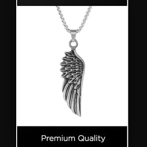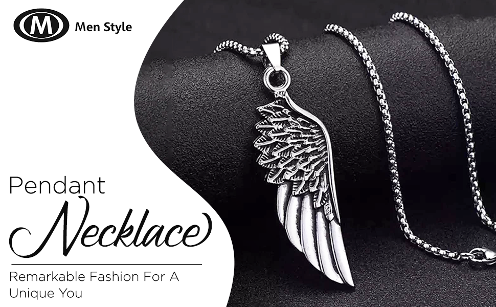 M Men StyleAngle Wing Feather Locket With Chain Stainless Steel Sterling Silver Pendant For Mens And Womens
