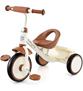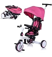 The BABY JOY 5-in-1 Tricycle is a versatile toddler bike designed for ages 1.5 to 5 years, featuring a reversible seat, adjustable canopy, and removable push handle. Its all-terrain EVA wheels and safety-certified design ensure stability and security, while parent-friendly features like a cup holder and storage basket make outings effortless. This multifunctional trike grows with your child, offering five modes from stroller to independent ride, making it a smart, stylish choice for modern families.