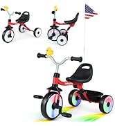 My sons old push trike bit the dust so I needed to find a new one.. I spent so much time looking through countless different brands and reviews of trikes on Amazon and decided to go with this one. I’m so glad I did!!! This one is so much better than his old push trike. We’ve had it for about 2-3 months and every time we’re out in public with it I get comments from people on how cool and nifty the trike is. It is so sturdy and rides super good on different grounds.. we’ve pushed it through grass at the fair, carpeted areas at the mall, rocks, dirt and even mud, mulch and bumpy areas and it glides through easily every time. My son is 2 and a half and it’s the perfect size for him and will continue to be a great size for a long time. He rides it on his own all the time as well, the push handle is very easy to pop off within a second and he’s good to go.. heck he even rides it on his own with the push handle on it still lol It’s suitable for kids much much younger than him as well with the extra features that I don’t have on our trike in the pics like the footrests(I keep those in a knee walker bag that I attached to the long push bar for extra storage in case he gets tired of peddling) It was very easy to put together, I put it together by myself and it only took me about 10 minutes.. not to mention it fits perfectly in my back hatch of my car but if you don’t have much room in your trunk the push bar is easy to detach and the handlebar folds in to make it a little more compact. If you’ve been searching reviews for hours like I did and just can’t decide on which push trike to get do yourself a favor and just get this one!! Great quality, the price is right and I can tell it will hold up for many years to come!