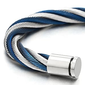 COOLSTEELANDBEYONDLarge Elastic Adjustable Steel Cuff Bangle Bracelet for Men Women