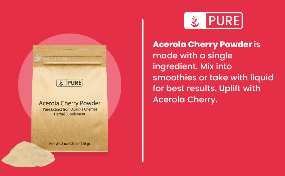 PURE ORIGINAL INGREDIENTS Acerola Cherry Powder is a premium, single-ingredient supplement that delivers the antioxidant benefits of this superfruit in a convenient powder form. Non-GMO and gluten-free, it comes in eco-friendly packaging, making it a perfect addition to smoothies and shakes for health-conscious adults.