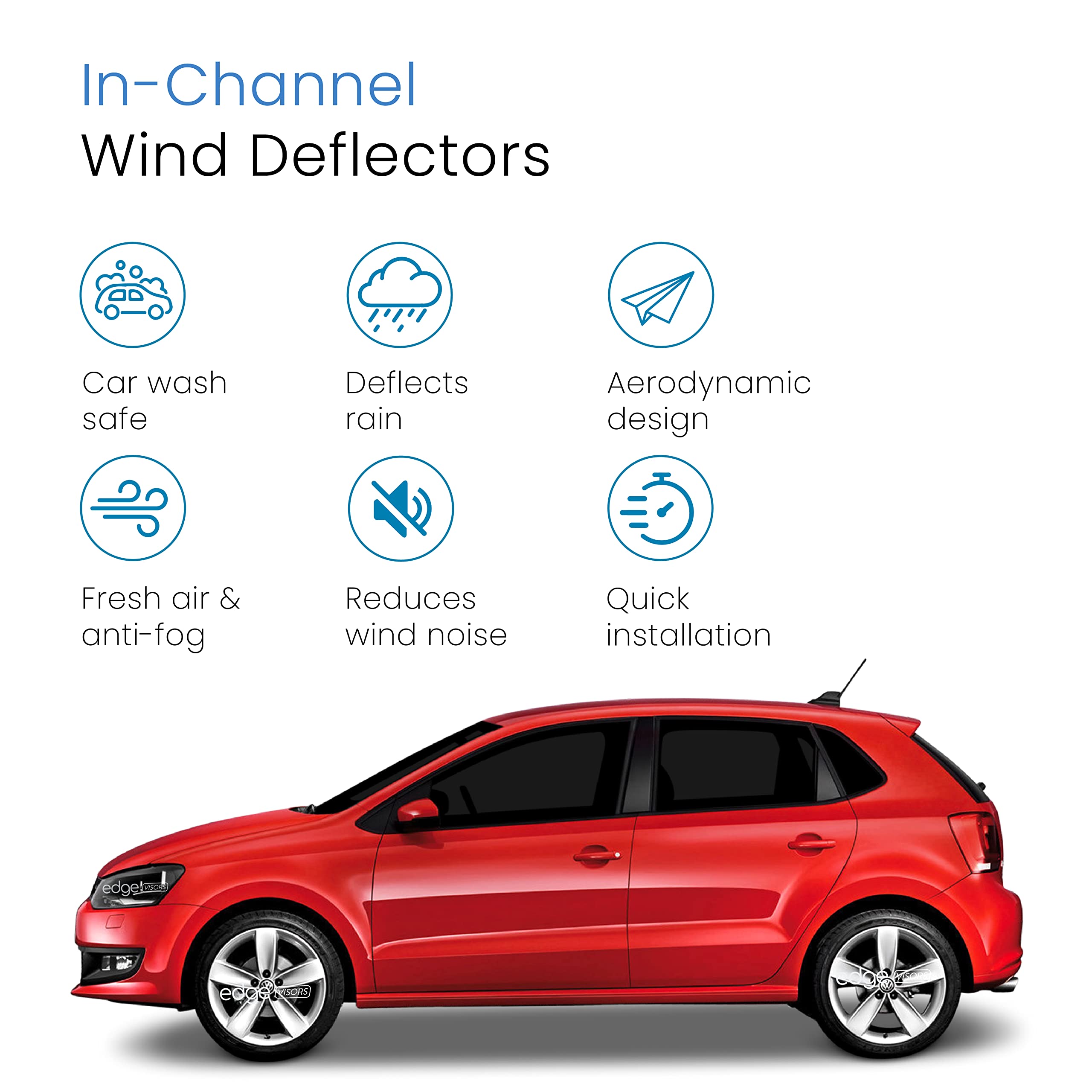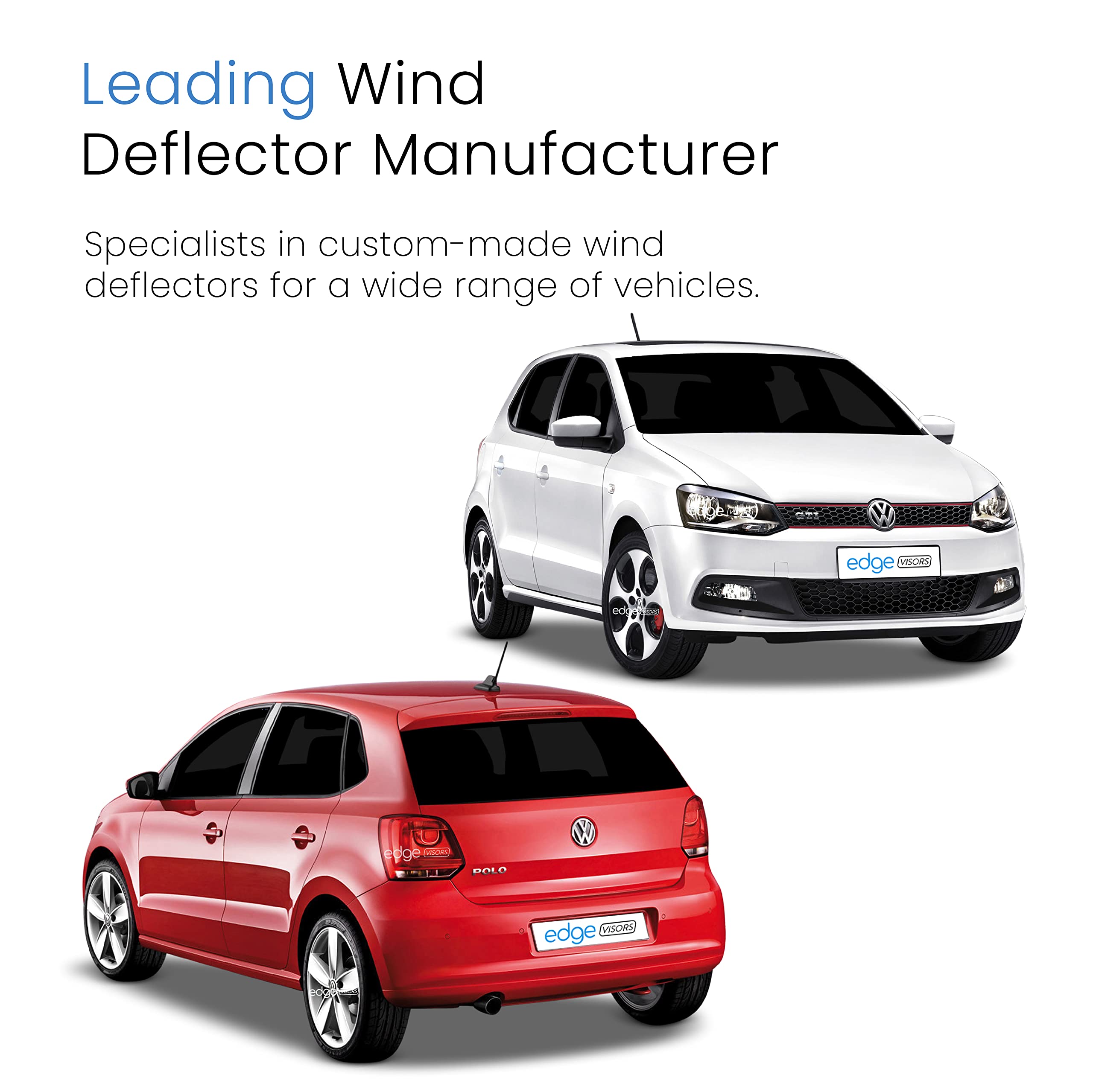 The EdgeVisors Wind Deflectors Set for VW Polo MK5 (2009-2017) is a premium accessory designed to enhance your driving experience by redirecting airflow, reducing noise, and improving air quality. Made from high-grade acrylic, these deflectors are built to last and feature a sleek, aerodynamic design that complements your vehicle. With easy installation and a premium smoked grey tint for UV protection, they offer both functionality and style.