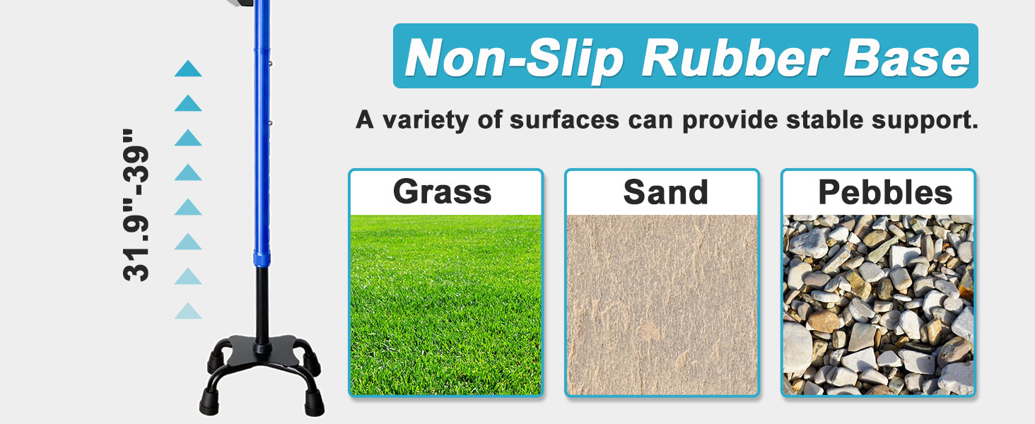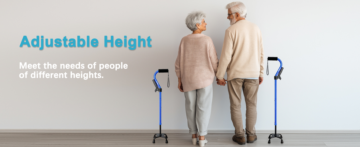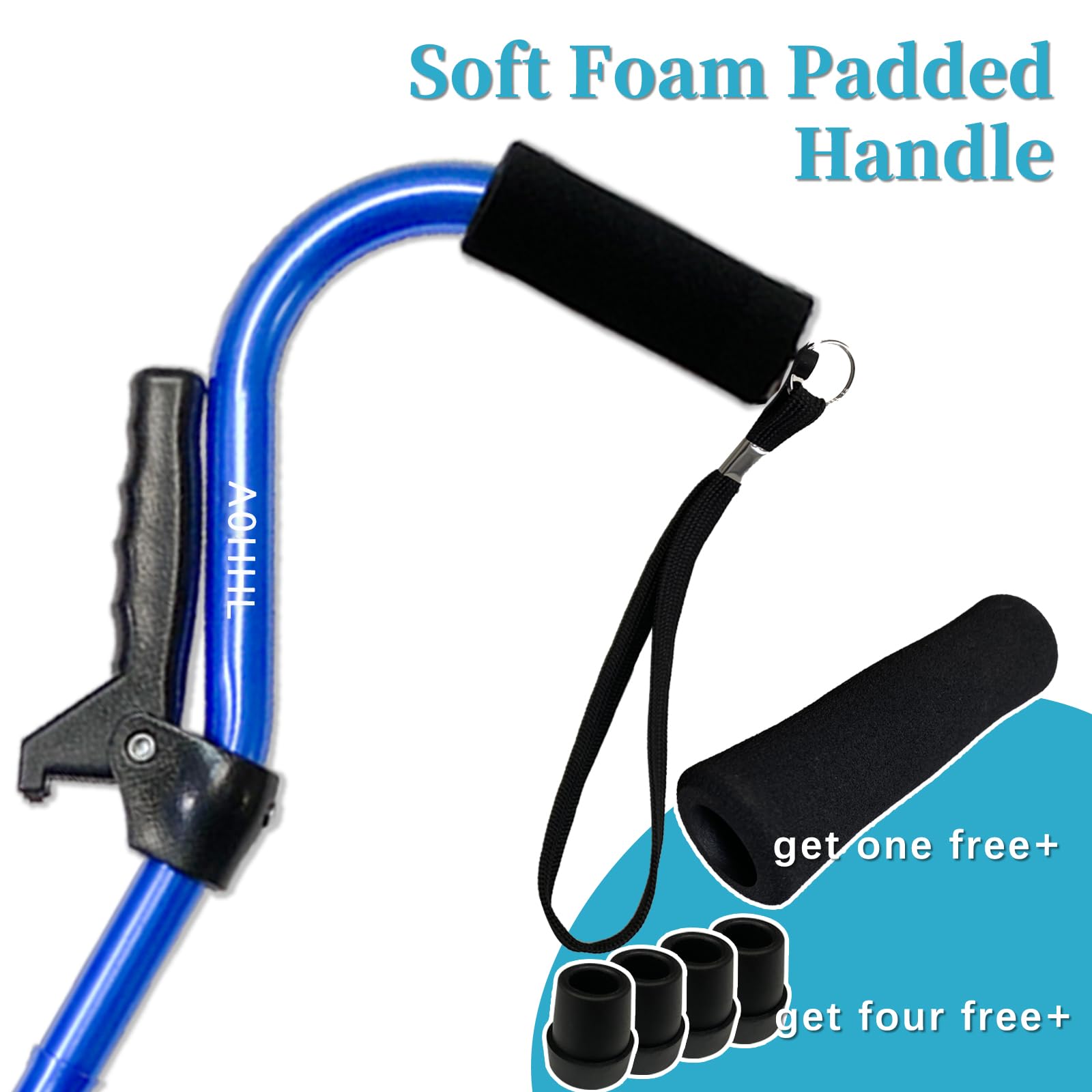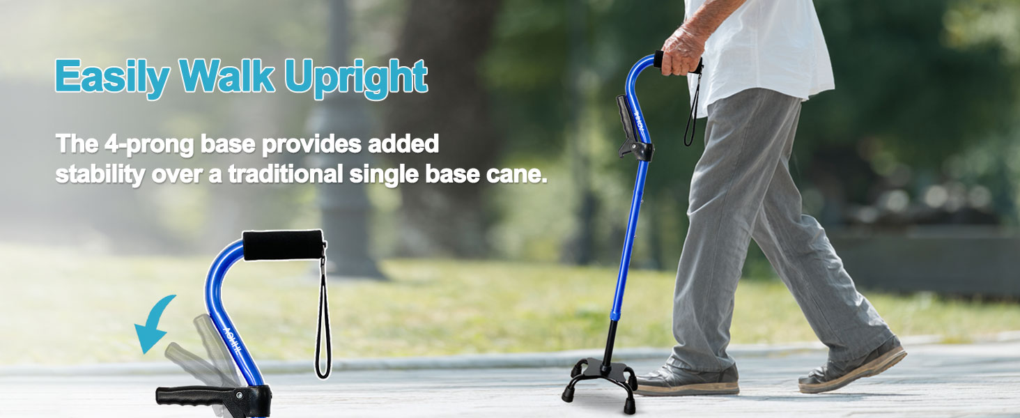 The AOHHL Quad Walking Cane combines a robust 1.5x thicker aluminum shaft with a 4-pronged rubber base for unmatched stability and safety. Adjustable from 32 to 38 inches, it fits a wide height range and supports up to 300 lbs while weighing only 1.8 lbs. Featuring a soft foam ergonomic handle and self-standing design, it’s the perfect blend of durability, comfort, and convenience for active seniors and anyone needing reliable mobility support.