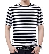 XTAPAN Men's French T-Shirt Slim Cotton Spandex Breton Striped Tee Shirt for Men
