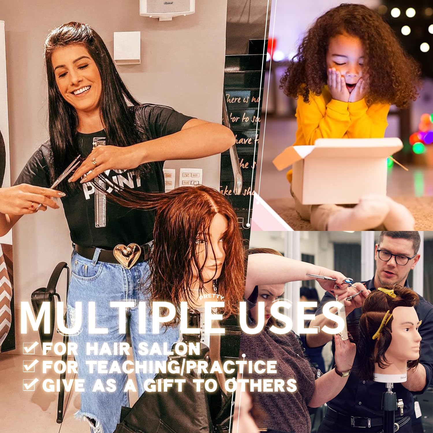 This mannequin head is crafted from 100% human hair, featuring embedded eyelashes for a lifelike appearance. It comes with a table clamp stand, making it perfect for hairdressers, cosmetology students, and as a unique gift. With a focus on quality and customer support, this product is designed to enhance your hair styling experience.
