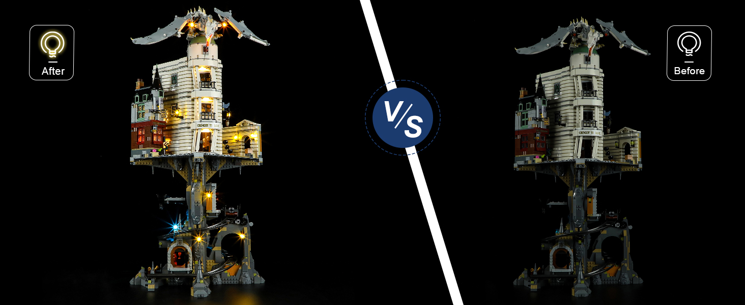 This YEABRICKS LED Light Kit is a precision-engineered lighting accessory designed exclusively for the LEGO 76417 Harry Potter Gringotts Wizarding Bank Collector’s Edition. Compact and battery-powered, it enhances your model with vibrant multicolor illumination. The kit includes detailed QR code instructions for easy installation and comes with dedicated customer support, making it the perfect upgrade for serious LEGO enthusiasts and collectors.