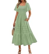 This 2023 summer women's midi dress features a breathable floral chiffon fabric with semi-sheer puff sleeves, a smocked elastic high waist for a flattering fit, and a flowy tiered design. Available in US sizes 4-18, it combines comfort and elegance for versatile wear across casual and formal summer events.