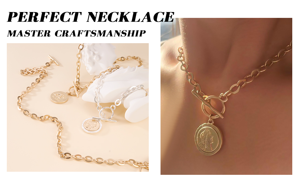 Antique Gold Plated Roman Coin Necklace for Women 18 Inch Chain Pendant Necklace Birthday Anniversary Jewelry Gift for Women