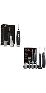 This has to be thee most powerful water flossed I’ve ever used. That said, Use with caution. I did manage to hurt myself while using it so if you’re looking to buy it for children, I’d say look elsewhere. Now if you’re on the market for an electric toothbrush and a water flossed, This is a really great deal! The toothbrush works great, I’ve had it for a few weeks now and I still haven’t had to charge it. It doesn’t do anything special in my opinion but it’s still a really good toothbrush. The electric water flossed on the other hand might be worth the price alone. On the highest setting the stream of water is extremely powerful but on the lower level, the stream still feels strong enough to get results. The toothbrush also came with a hard case that holds the toothbrush and 2 toothbrush heads and the water flosser came with a nice soft bag that holds the flosser and all of the little attachments. I’d definitely suggest picking this up.