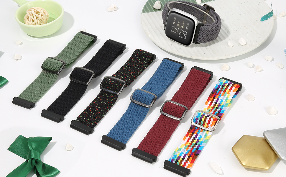 Braided Strap Compatible for Fitbit Versa 2/Versa Lite/Versa SE, 2 Pack Adjustable Elastic Nylon Sport Watch Band for Women Men