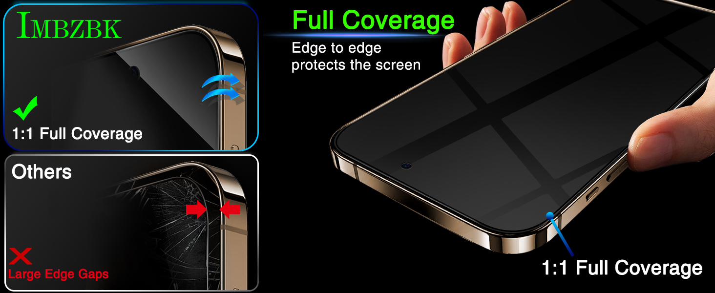 The IMBZBK 3 Pack Privacy Screen Protector for iPhone 16 Pro Max offers advanced 25° privacy protection, ensuring that your screen is only visible to you. Made from Aerospace-Grade tempered glass, it provides 10X stronger protection against scratches and drops. The ultra-thin design maintains crystal clear visuals while being compatible with most phone cases. This bundle includes everything you need for easy installation and optimal protection.