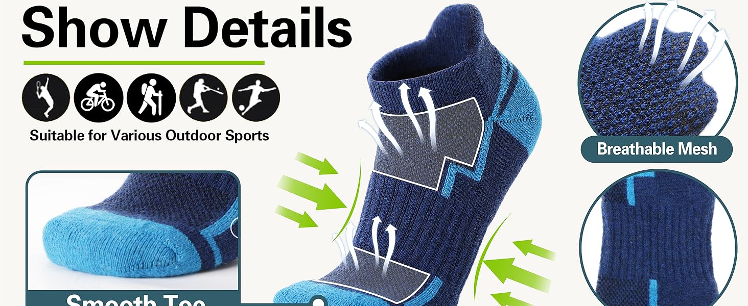 Sponsored Ad 6 Pairs Merino Wool Ankle Hiking Running Socks | Desertcart Romania