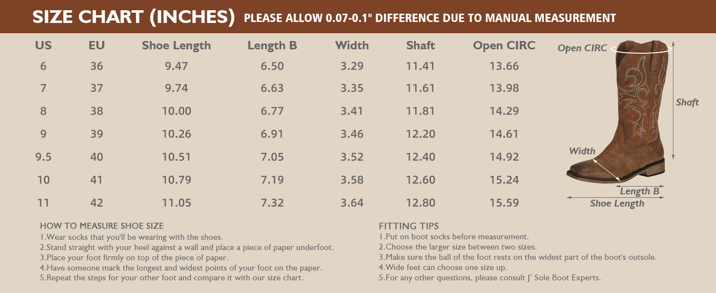 J's.o.l.eWomen's Cowboy Boots Square Toe Cowgirl Boots Ladies Mid Calf Western Boots Black Brown