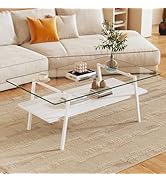The IANIYA Clear Glass Coffee Table features a modern all-black design with durable metal tube legs, dual-layer construction for versatile storage, and a robust load capacity of 220 pounds, making it an ideal addition to any contemporary living space.