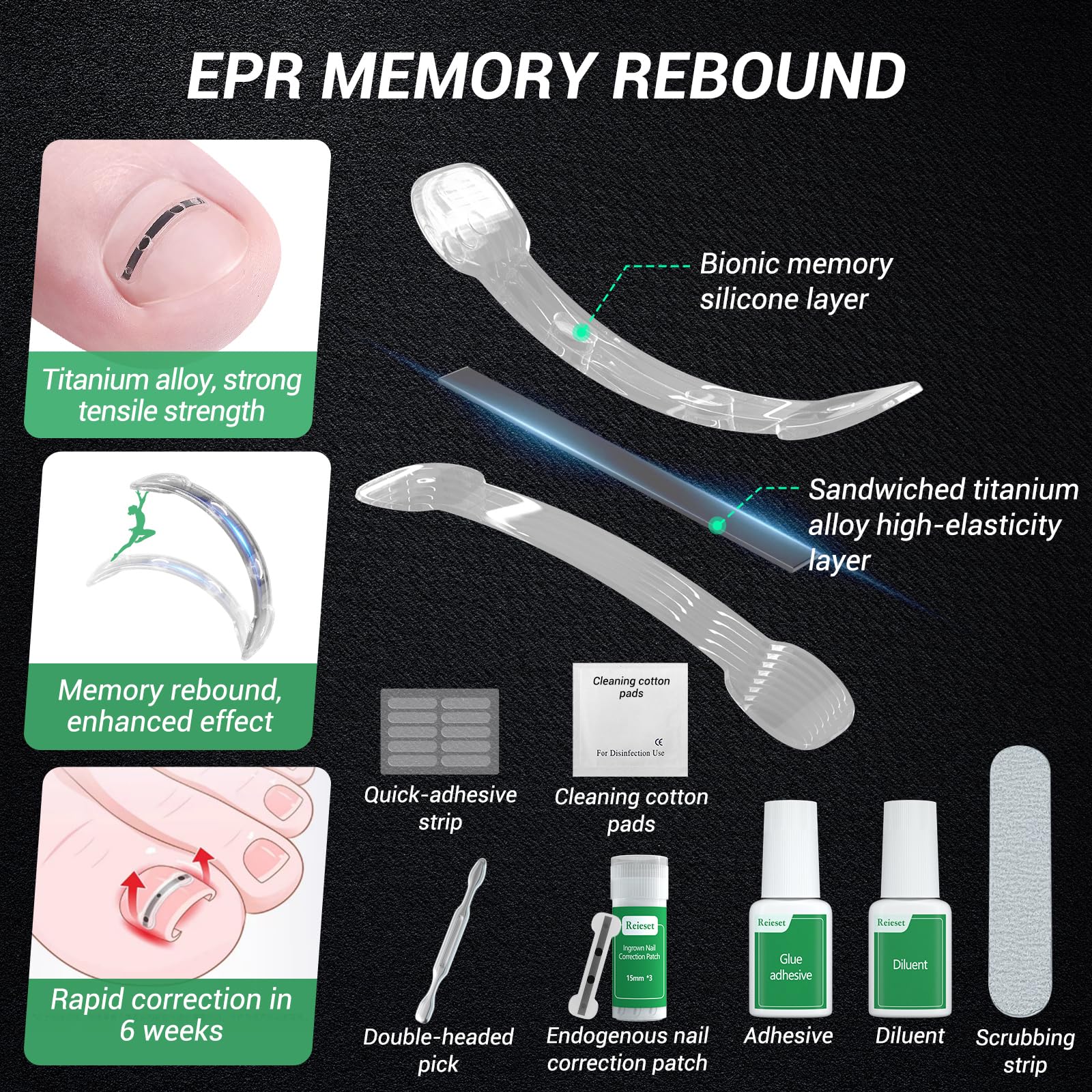 The Reieset Titanium Alloy Ingrown Toenail Treatment Kit uses patented titanium alloy and advanced 5th generation patch technology to reshape curved nails and relieve ingrown toenail pain rapidly. Designed for easy, mess-free application, it delivers noticeable relief within days and full correction in weeks, backed by over 1 million satisfied users and a 60-day satisfaction guarantee.