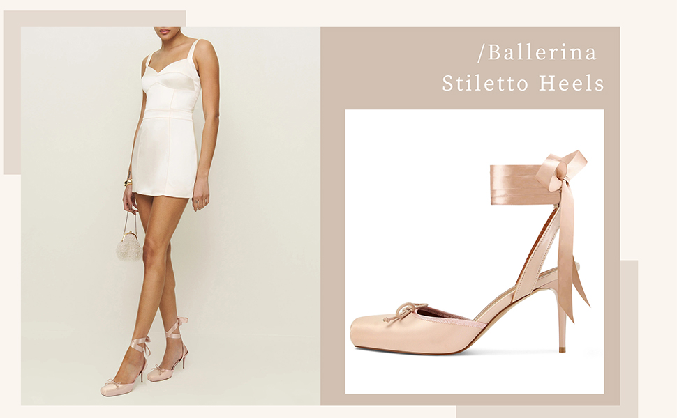 Satin Ballet Heels for Women with Bow Square Toe Ballerina Stiletto Heels Lace Up High Heel Slingback Pumps Strappy Mary Janes Cute Elegant Party Shoes