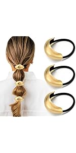 This set of 3 silver metal hair ties combines durability and elasticity to securely hold thick hair without damage. Featuring a unique geometric design, these ponytail holders double as elegant accessories, making them perfect for daily wear or gifting.