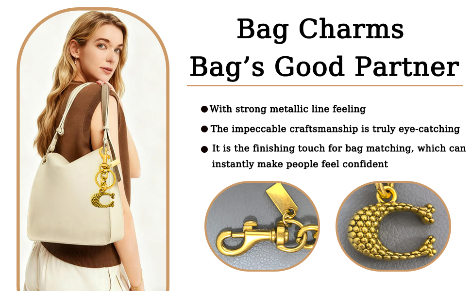Gold C Bag Charm for Handbag - Christmas Stocking Stuffers Gifts for Women - Purse Charms Keychains Accessories