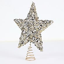 Beware this has glitter all over it that comes flying off it as soon as you open it. It’s everywhere and I mean everywhere. My dog, husband , clothes, and all over the house in less than 5 minutes of holding it. Sending it back. If you love glitter this is for you. If not you better pass on it. Also it’s pretty heavy so if you don’t have a sturdy tree top it will fall over.