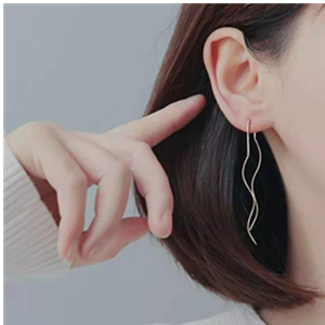 Double Curved Sterling Silver Threader Earrings Tassel Drop Dangle Earrings Gift for Womens